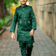 The Verdant Jade Koti Set dazzles with its deep green hue and lush malai satin finish—perfect for festive occasions or special family events.